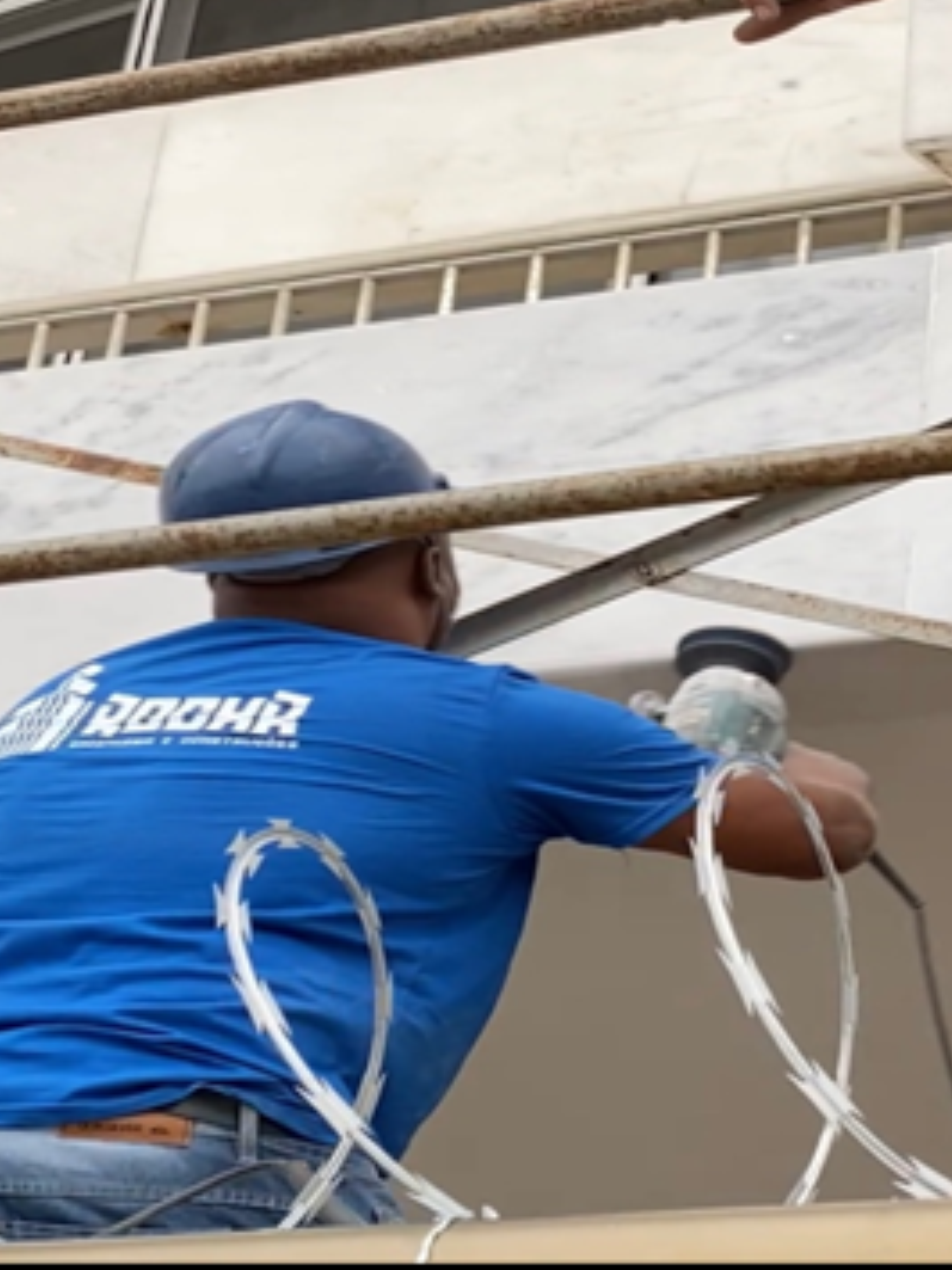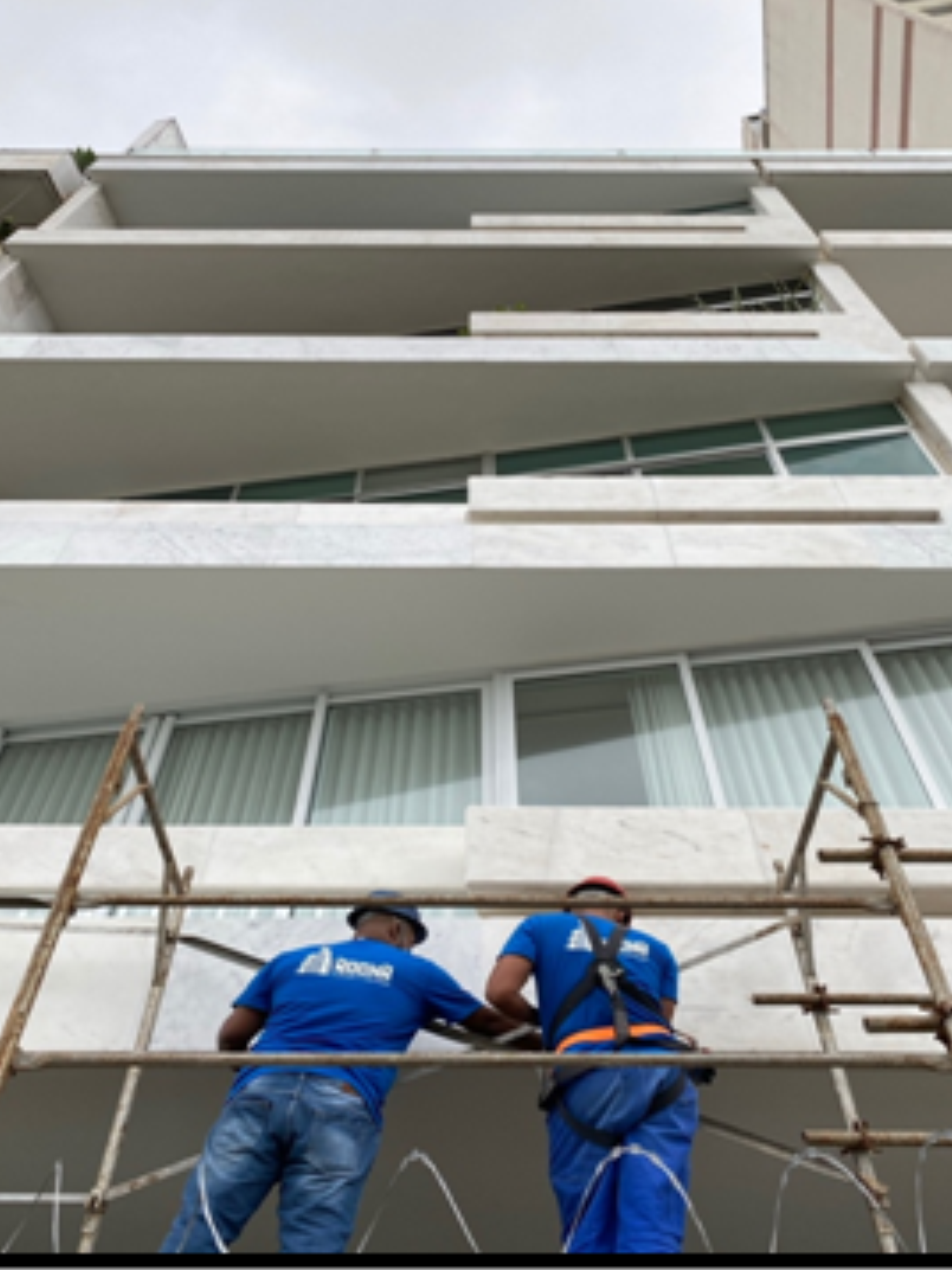 Recuperação da Fachada / Boleamento e Chanfreamento dos Mármores da fachada.